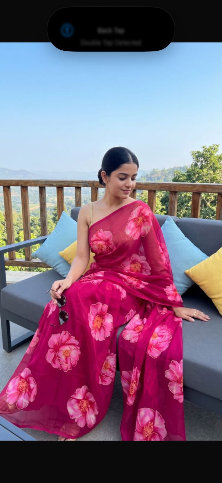 Chiffon Georgette Floral Printed Saree ( No Blouse)- PinkAvailability: 1 in stock