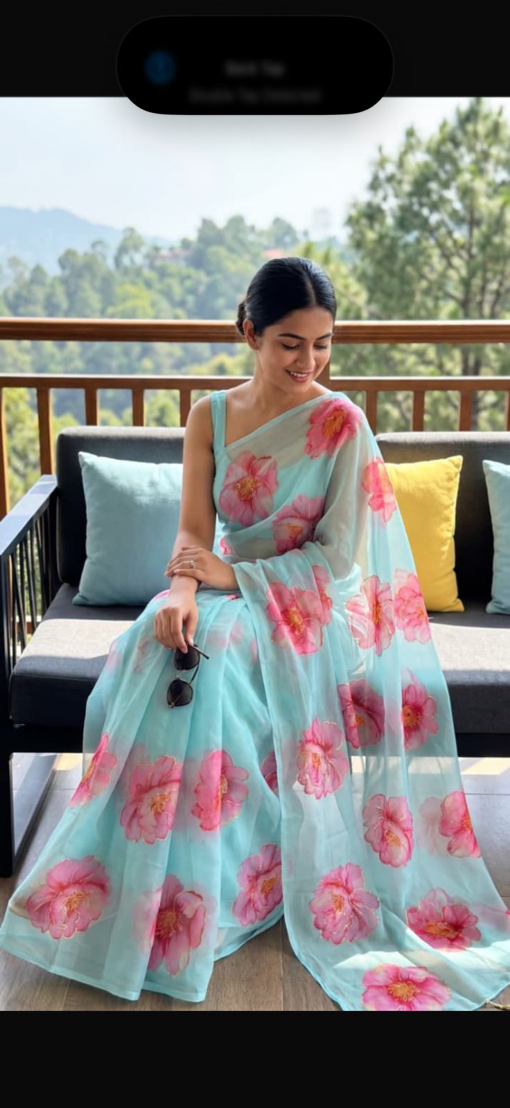 Chiffon Georgette Floral Printed Saree ( No Blouse)- Sky BlueAvailability: 1 in stock