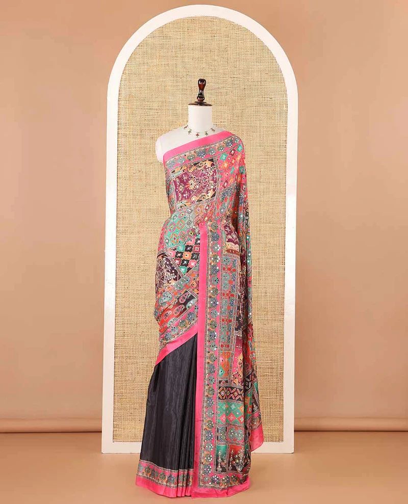 Geometric Design Masakali Saree – Black