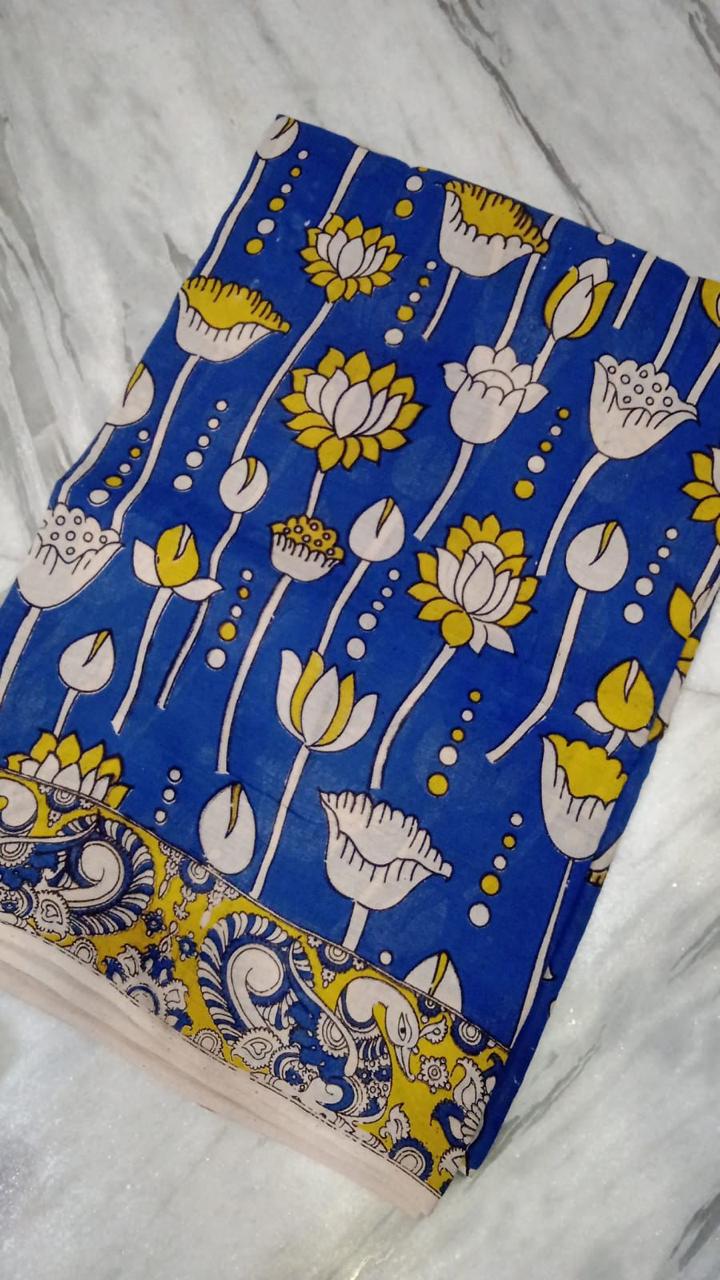 Be the first to review “Kalamkari Cotton Saree – Blue”